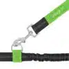 Mittels Karabiner lässt sich die Sportleine an den Bauchgurt der „Leisegrün Joggingleine“ befestigt und eignet sich somit auch zum Joggen, Walken oder auch zum Laufen mit zwei Hunden. Die Leine kann auch als Verlängerung mit Ruckdämpfung zu eine Normalen Hundeleine verwendet werden.